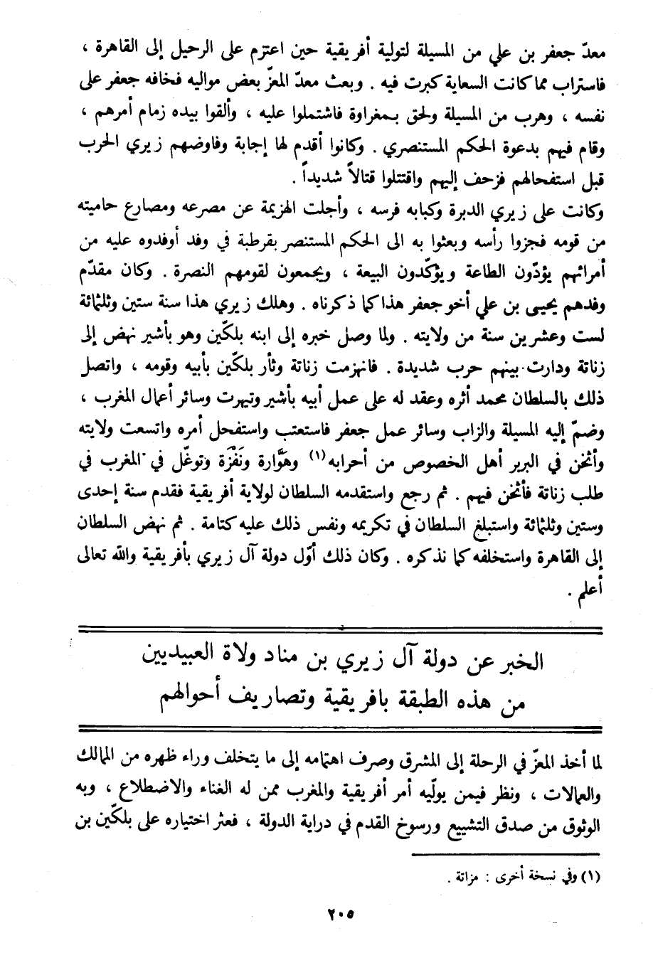 الخبر عن دولة آل زيري بن مناد ولاة العبيديين من هذه الطبقة بإفريقية وتصاريف أحوالهم