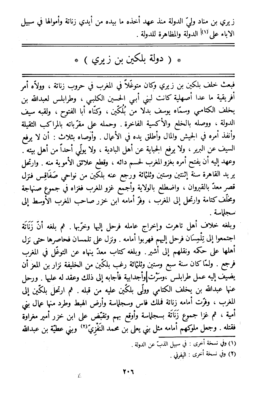 زيري بن مناد وليّ الدولة منذ عهد أخذه ما بيده من أيدي زناتة وأموالها في سبيل الاباء على [1] الدولة والمظاهرة للدولة.