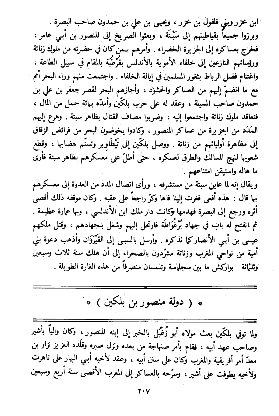 ولما توفي بلكّين بعث مولاه أبو زغبل بالخبر إلى ابنه المنصور، وكان واليا بأشير وصاحب عهد أبيه، فقام بأمر صنهاجة من بعده ونزل صيره وقلّده العزيز نزار بن معدّ أمر إفريقية والمغرب وكان على سنن أبيه، وعقد لأخيه أبي البهار على تاهرت ولأخيه يطوفت على أشير، وسرّحه بالعساكر إلى المغرب الأقصى سنة أربع وسبعين