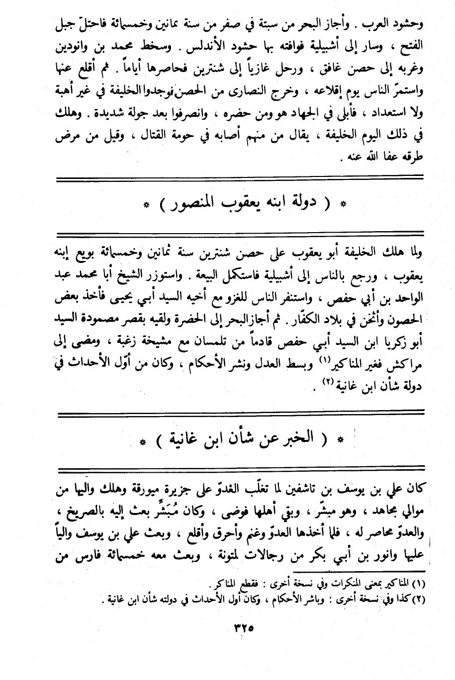 [2] كذا وفي نسخة أخرى: وباشر الأحكام، وكان أول الأحداث في دولته شأن ابن غانية.