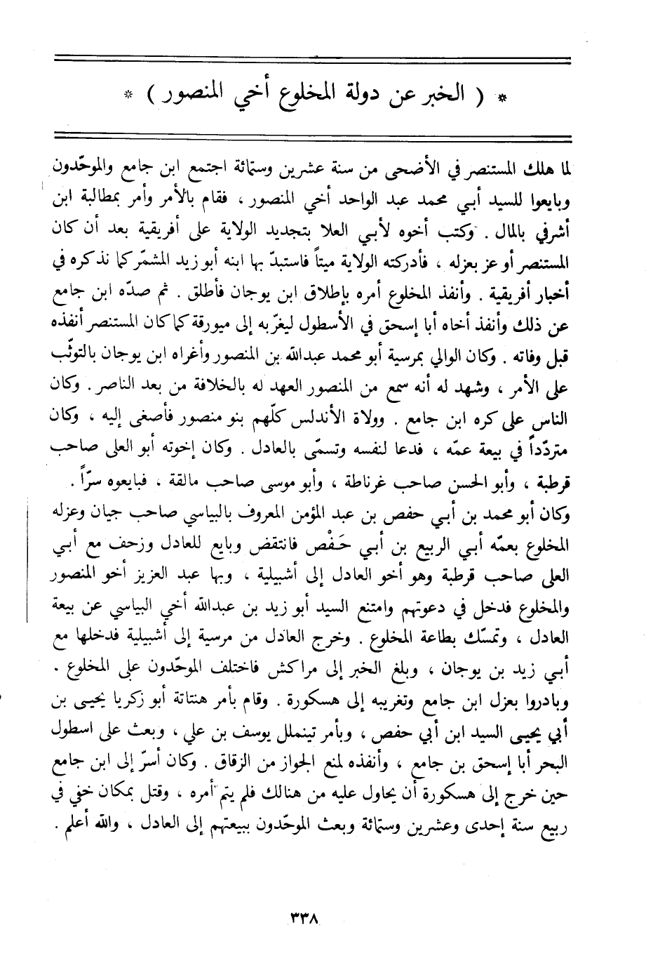 وبادروا بعزل ابن جامع وتغريبه إلى هسكورة. وقام بأمر هنتاتة أبو زكريا يحيى بن أبي يحيى السيد ابن أبي حفص، وبأمر تين ملّل يوسف بن علي، وبعث على اسطول البحر أبا إسحاق بن جامع، وأنفذه لمنع الجواز من الزقاق. وكان أسرّ إلى ابن جامع حين خرج إلى هسكورة أن يحاول عليه من هنالك فلم يتم أمره، وقتل بمكان خفي في ربيع سنة إحدى وعشرين وستمائة وبعث الموحّدون ببيعتهم إلى العادل، والله أعلم