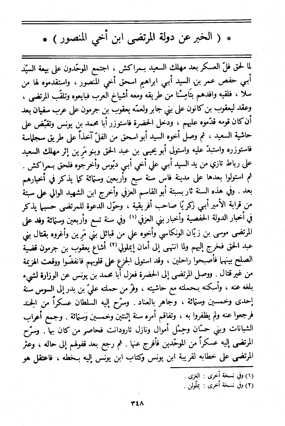 (الخبر عن دولة المرتضى ابن أخي المنصور)