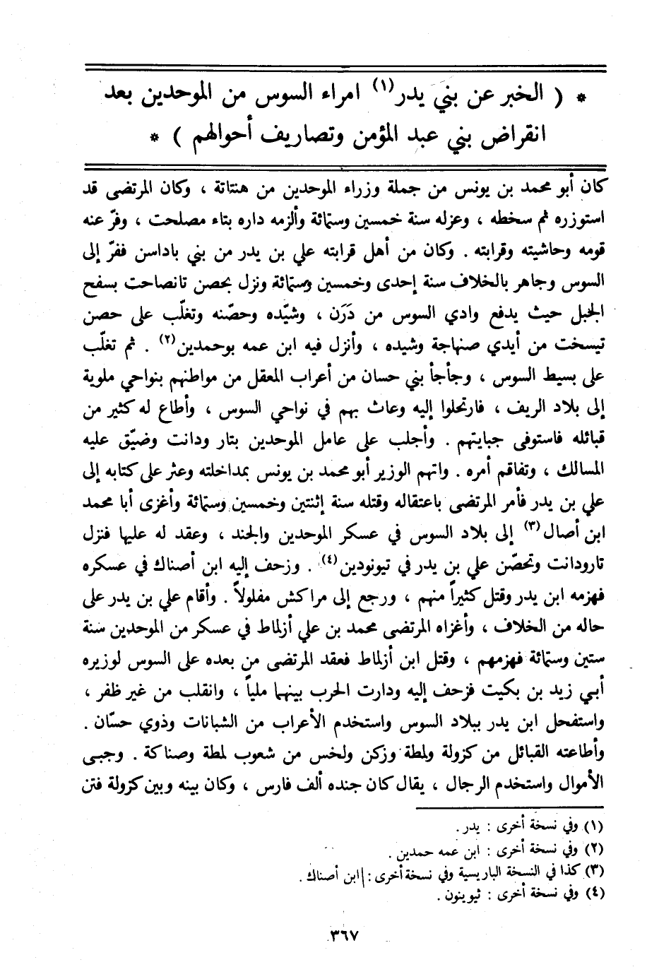 (الخبر عن بني يدر [1] أمراء السوس من الموحدين بعد انقراض بني عبد المؤمن وتصاريف أحوالهم)