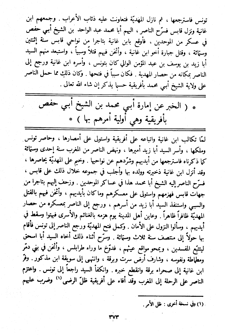 (الخبر عن إمارة أبي محمد بن الشيخ أبي حفص بإفريقية وهي أولية أمرهم بها)