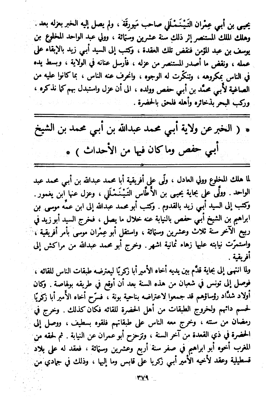 (الخبر عن ولاية أبي محمد عبد الله بن أبي محمد بن الشيخ أبي حفص وما كان فيها من الأحداث)