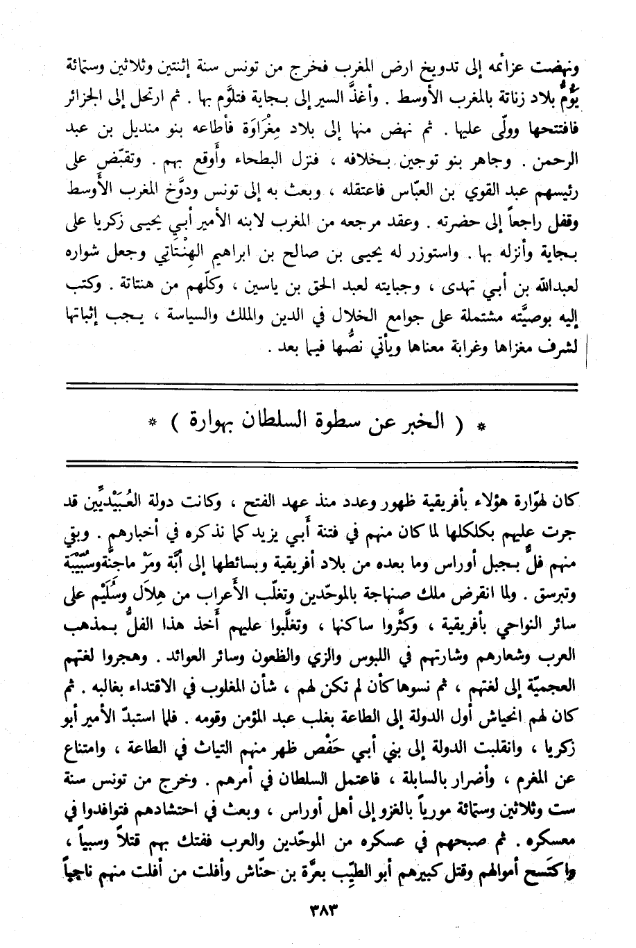 كان لهوّارة هؤلاء بإفريقية ظهور وعدد منذ عهد الفتح، وكانت دولة العبيديّين قد جرت عليهم بكلكلها لما كان منهم في فتنة أبي يزيد كما نذكره في أخبارهم. وبقي منهم فلّ بجبل أوراس وما بعده من بلاد إفريقية وبسائطها إلى أبّة ومر ماجنّة وسبّيبة وتبرسق. ولما انقرض ملك صنهاجة بالموحّدين وتغلّب الأعراب من هلال وسليم على سائر النواحي بإفريقية، وكثّروا ساكنها، وتغلّبوا عليهم أخذ هذا الفلّ بمذهب العرب وشعارهم وشارتهم في اللبوس والزي والظعون وسائر العوائد. وهجروا لغتهم العجميّة إلى لغتهم، ثم نسوها كأن لم تكن لهم، شأن المغلوب في الاقتداء بغالبه. ثم كان لهم انحياش أول الدولة إلى الطاعة بغلب عبد المؤمن وقومه. فلما استبدّ الأمير أبو زكريا، وانقلبت الدولة إلى بني أبي حفص ظهر منهم التياث في الطاعة، وامتناع عن المغرم، وأضرار بالسابلة، فاعتمل السلطان في أمرهم. وخرج من تونس سنة ست وثلاثين وستمائة موريا بالغزو إلى أهل أوراس، وبعث في احتشادهم فتوافدوا في معسكره. ثم صبحهم في عسكره من الموحّدين والعرب ففتك بهم قتلا وسبيا، واكتسح أموالهم وقتل كبيرهم أبو الطيّب بعرّة بن حنّاش وأفلت من أفلت منهم ناجيا
