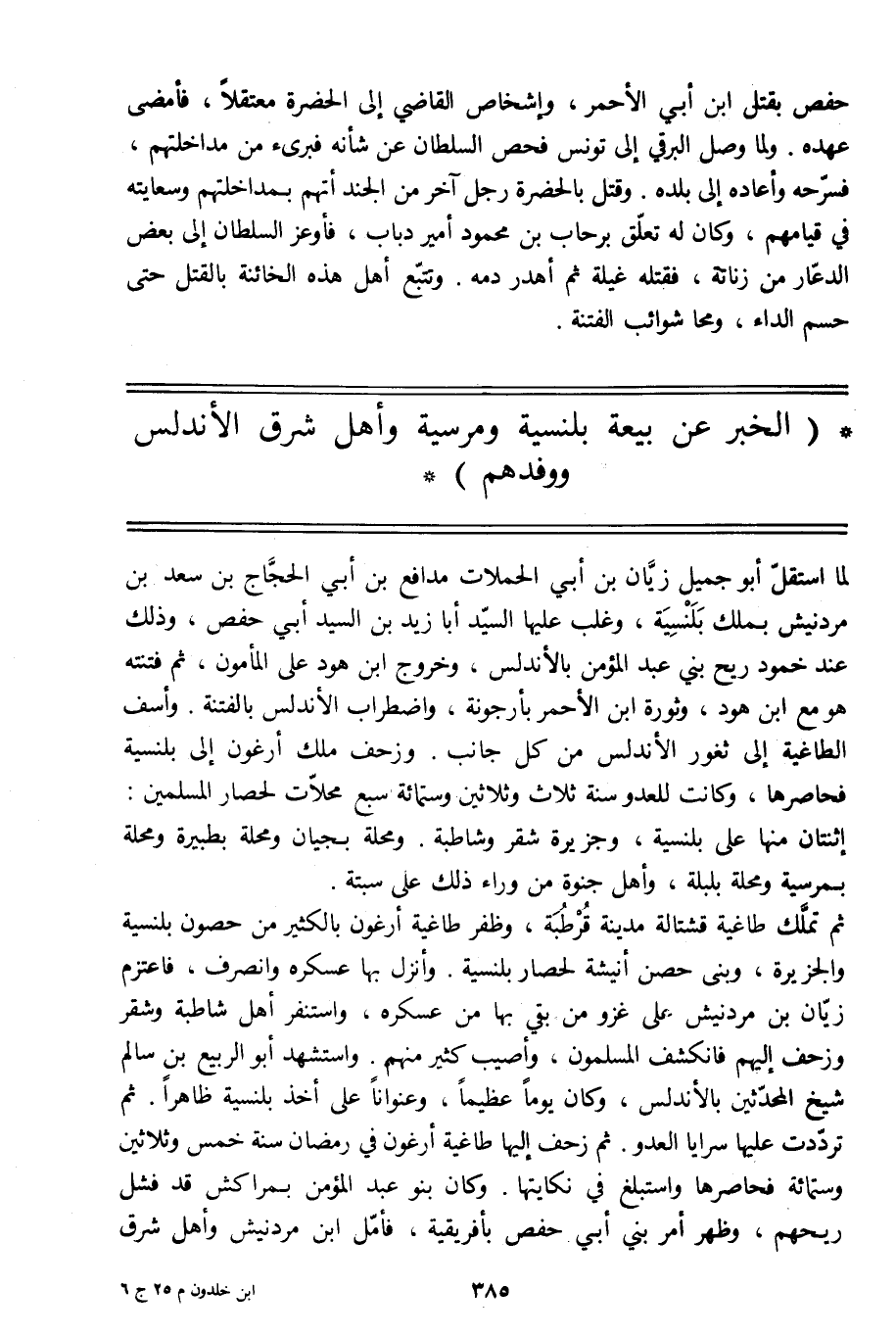 حفص بقتل ابن أبي الأحمر، وإشخاص القاضي إلى الحضرة معتقلا، فأمضى عهده. ولما وصل البرقي إلى تونس فحص السلطان عن شأنه فبرئ من مداخلتهم، فسرّحه وأعاده إلى بلده. وقتل بالحضرة رجل آخر من الجند أتهم بمداخلتهم وسعايته في قيامهم، وكان له تعلّق برحاب بن محمود أمير دباب، فأوعز السلطان إلى بعض الدعّار من زناتة، فقتله غيلة ثم أهدر دمه. وتتبّع أهل هذه الخائنة بالقتل حتى حسم الداء، ومحا شوائب الفتنة.