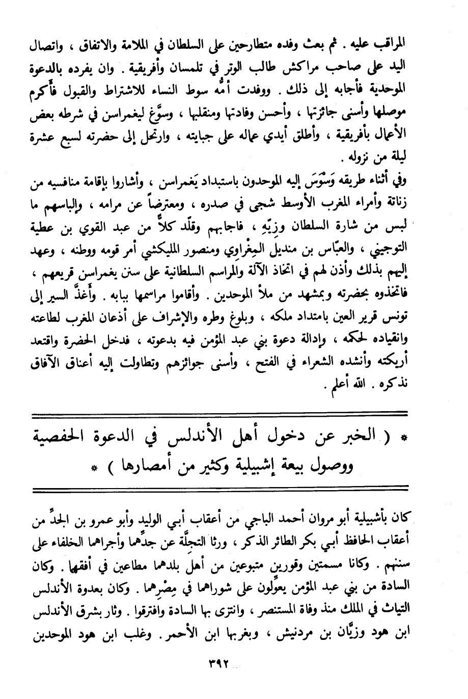 (الخبر عن دخول أهل الأندلس في الدعوة الحفصية ووصول بيعة إشبيلية وكثير من أمصارها)