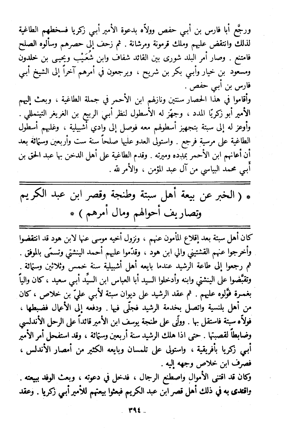 (الخبر عن بيعة أهل سبتة وطنجة وقصر ابن عبد الكريم وتصاريف أحوالهم ومال أمرهم)