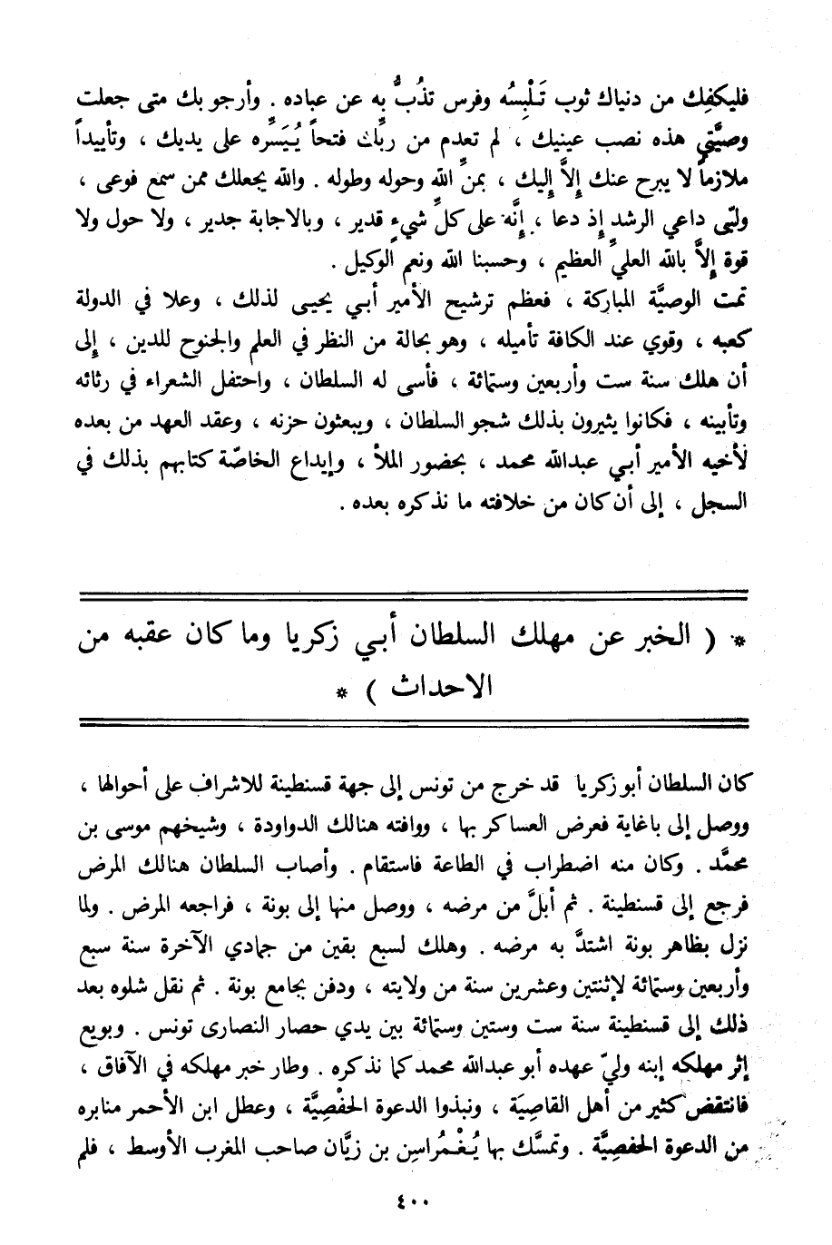 (الخبر عن مهلك السلطان أبي زكريا وما كان عقبه من الاحداث)