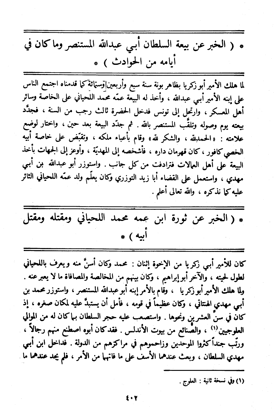 (الخبر عن بيعة السلطان أبي عبد الله المستنصر وما كان في أيامه من الحوادث)
