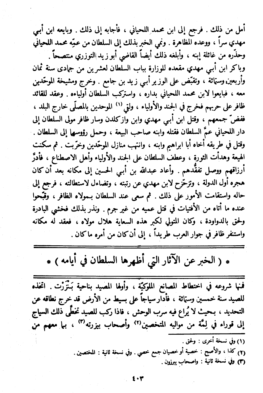(الخبر عن الآثار التي أظهرها السلطان في أيامه)
