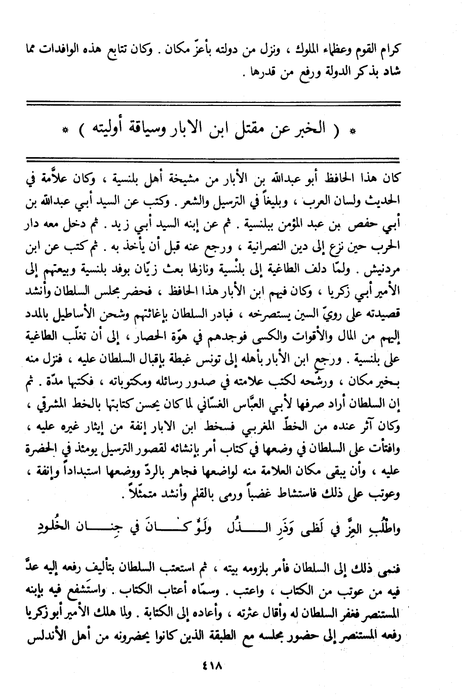 (الخبر عن مقتل ابن الأبار وسياقة أوليته)