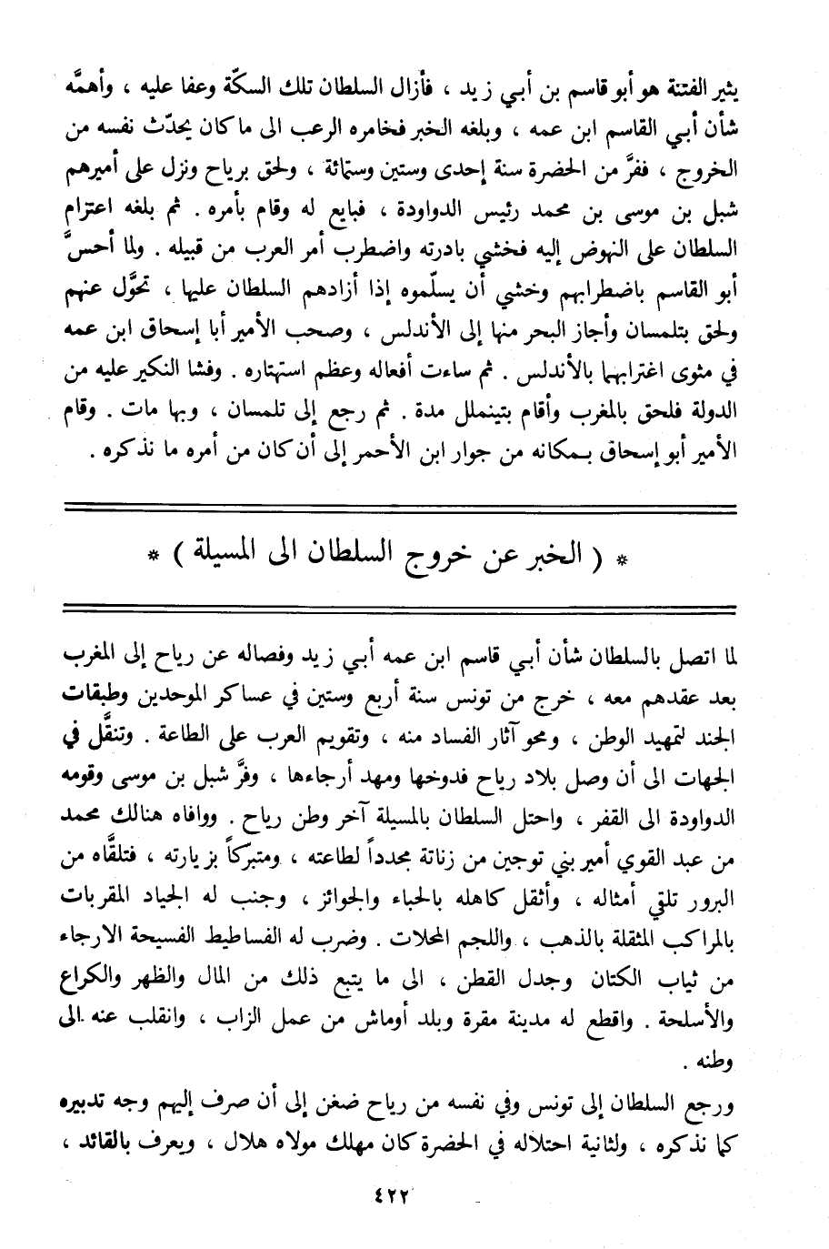 (الخبر عن خروج السلطان الى المسيلة)