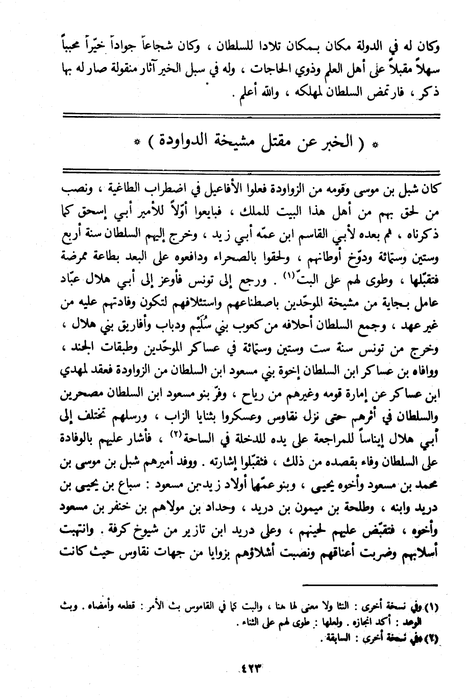 (الخبر عن مقتل مشيخة الدواودة)