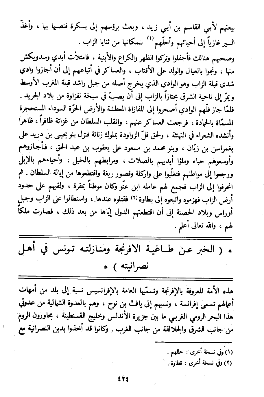 (الخبر عن طاغية الافرنجة ومنازلته تونس في أهل نصرانيته)