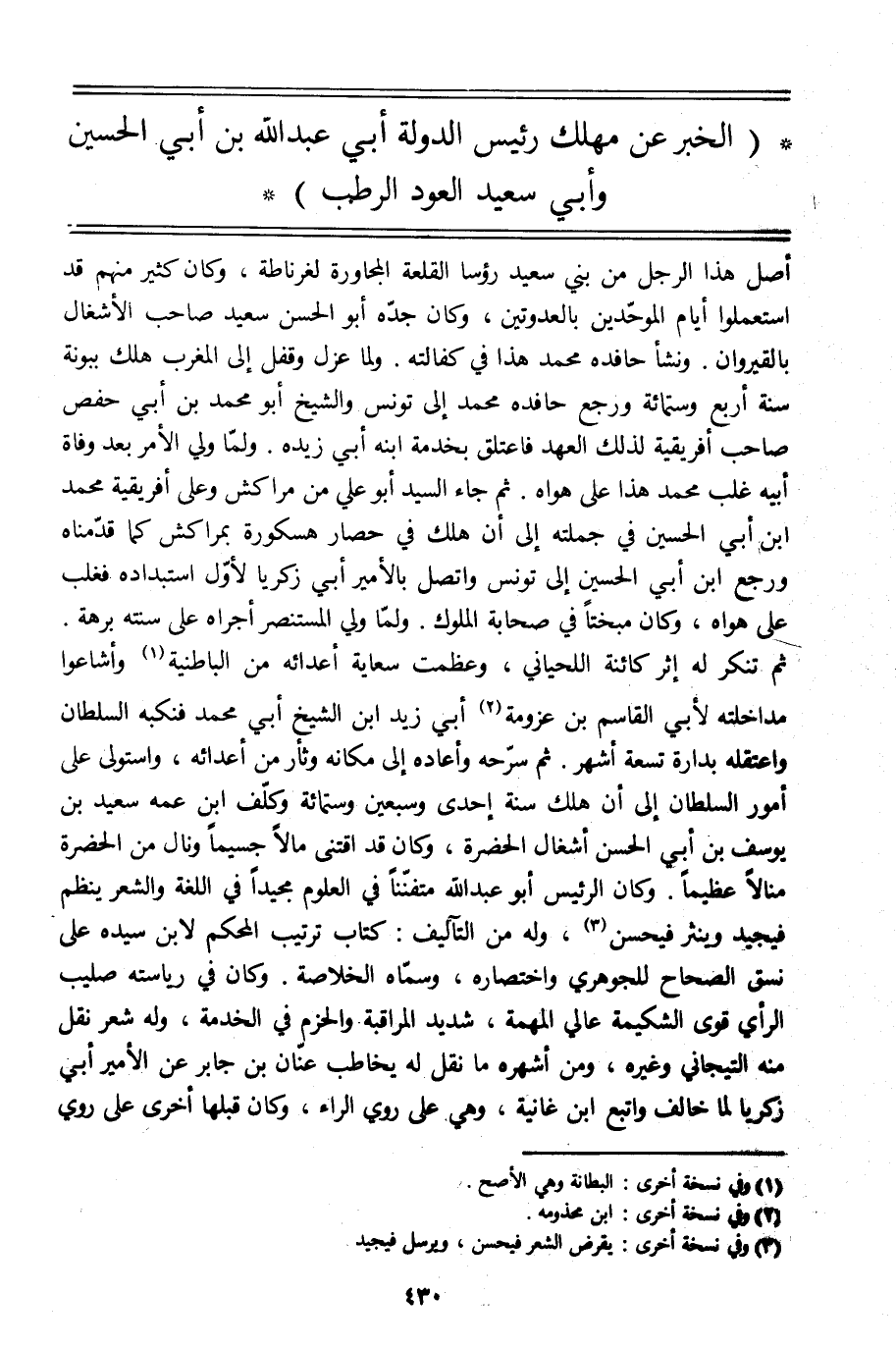 (الخبر عن مهلك رئيس الدولة أبي عبد الله بن أبي الحسين وأبي سعيد العود الرطب)