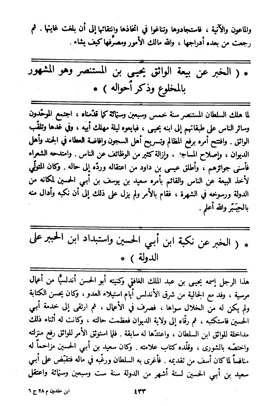 (الخبر عن نكبة ابن أبي الحسين واستبداد ابن الحببر على الدولة)