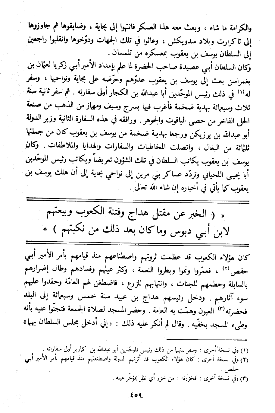 [2] وفي نسخة أخرى: كان هؤلاء الكعوب قد أثرتهم الدولة واصطنعتهم منذ قيامهم بأمر الأمير أبي حفص.