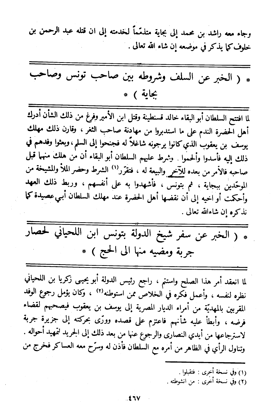 (الخبر عن السلف وشروطه بين صاحب تونس وصاحب بجاية)