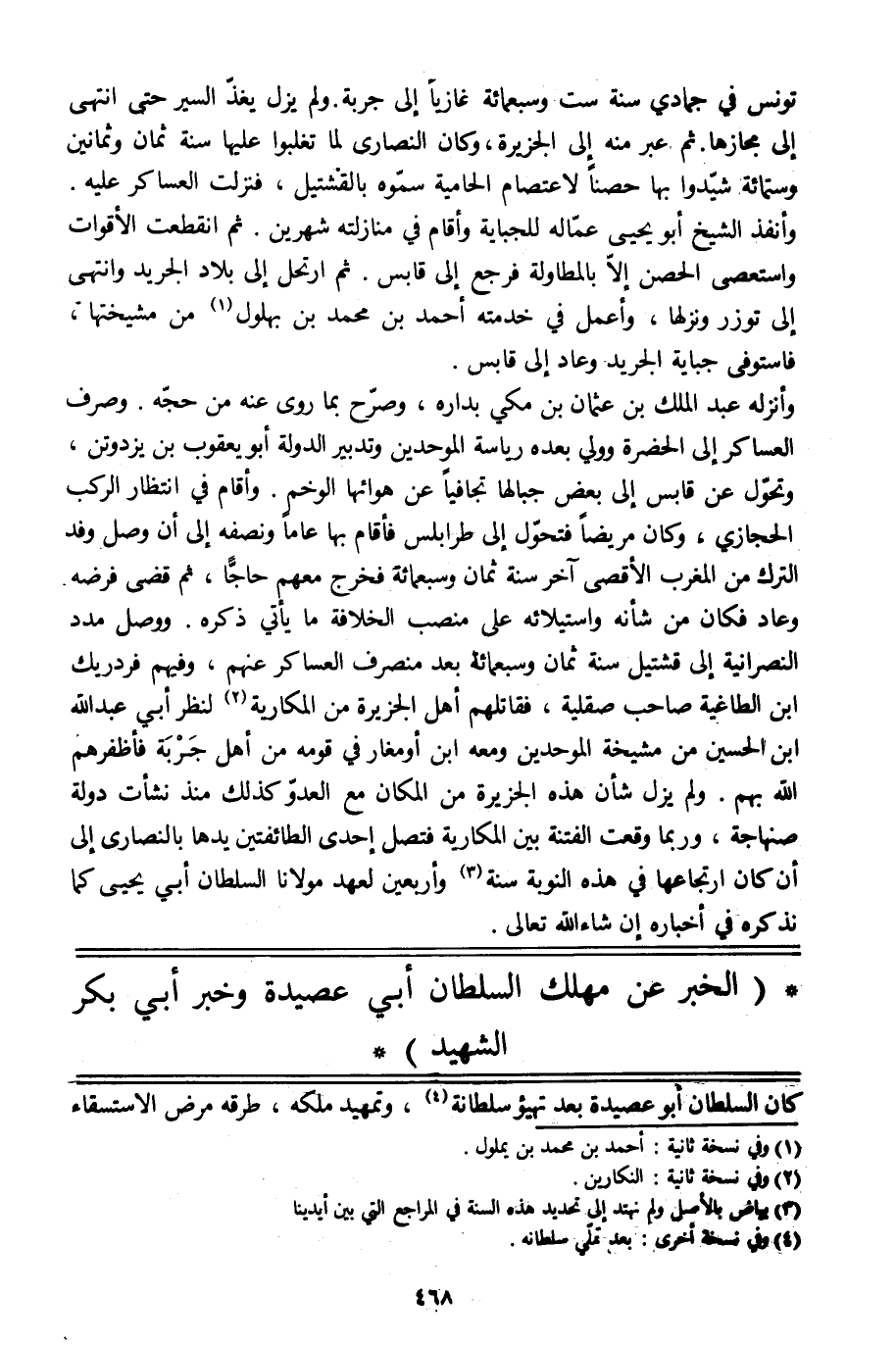 (الخبر عن مهلك السلطان أبي عصيدة وخبر أبي بكر الشهيد)