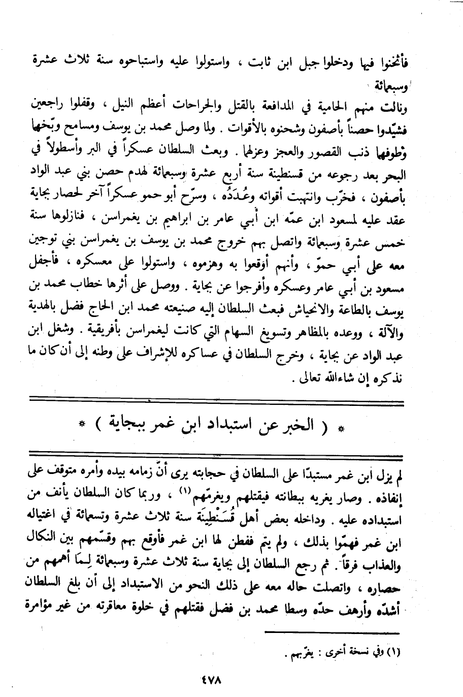 (الخبر عن استبداد ابن غمر ببجاية)