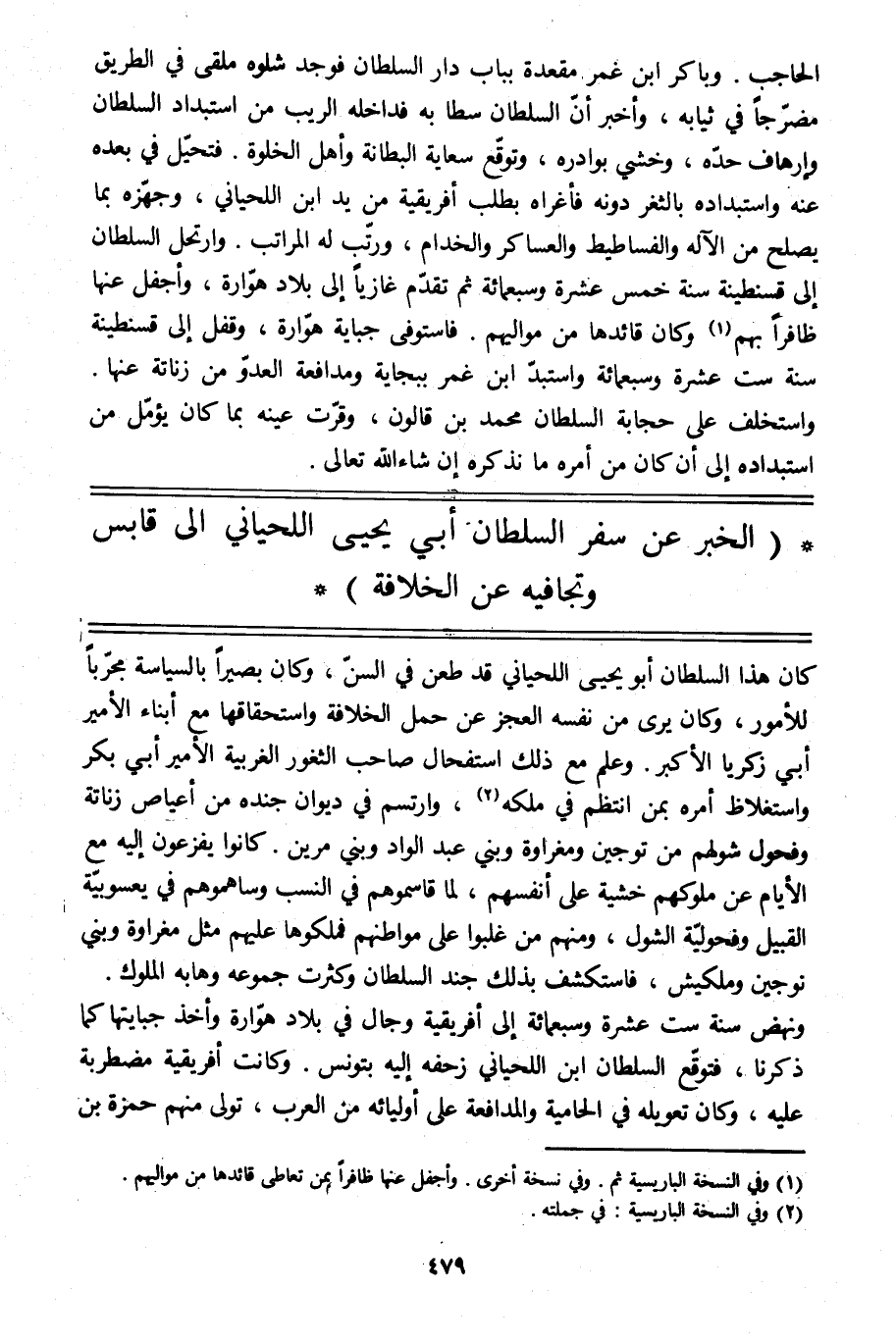 (الخبر عن سفر السلطان أبي يحيى اللحياني الى قابس وتجافيه عن الخلافة)