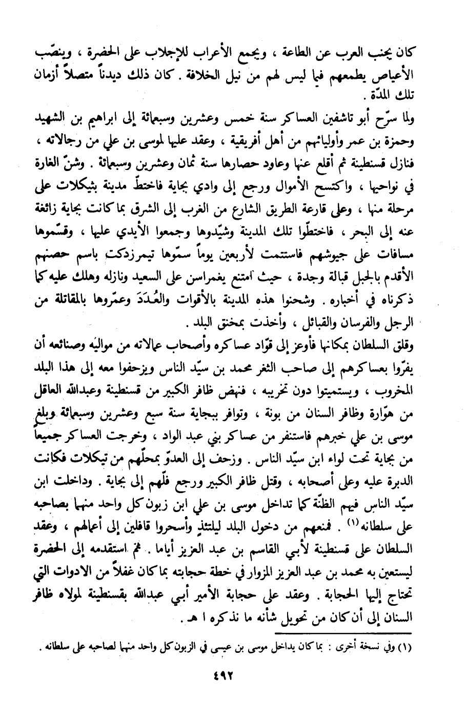 [1] وفي نسخة أخرى: بما كان يداخل موسى بن عيسى في الزبون كل واحد منهما لصاحبه على سلطانه.
