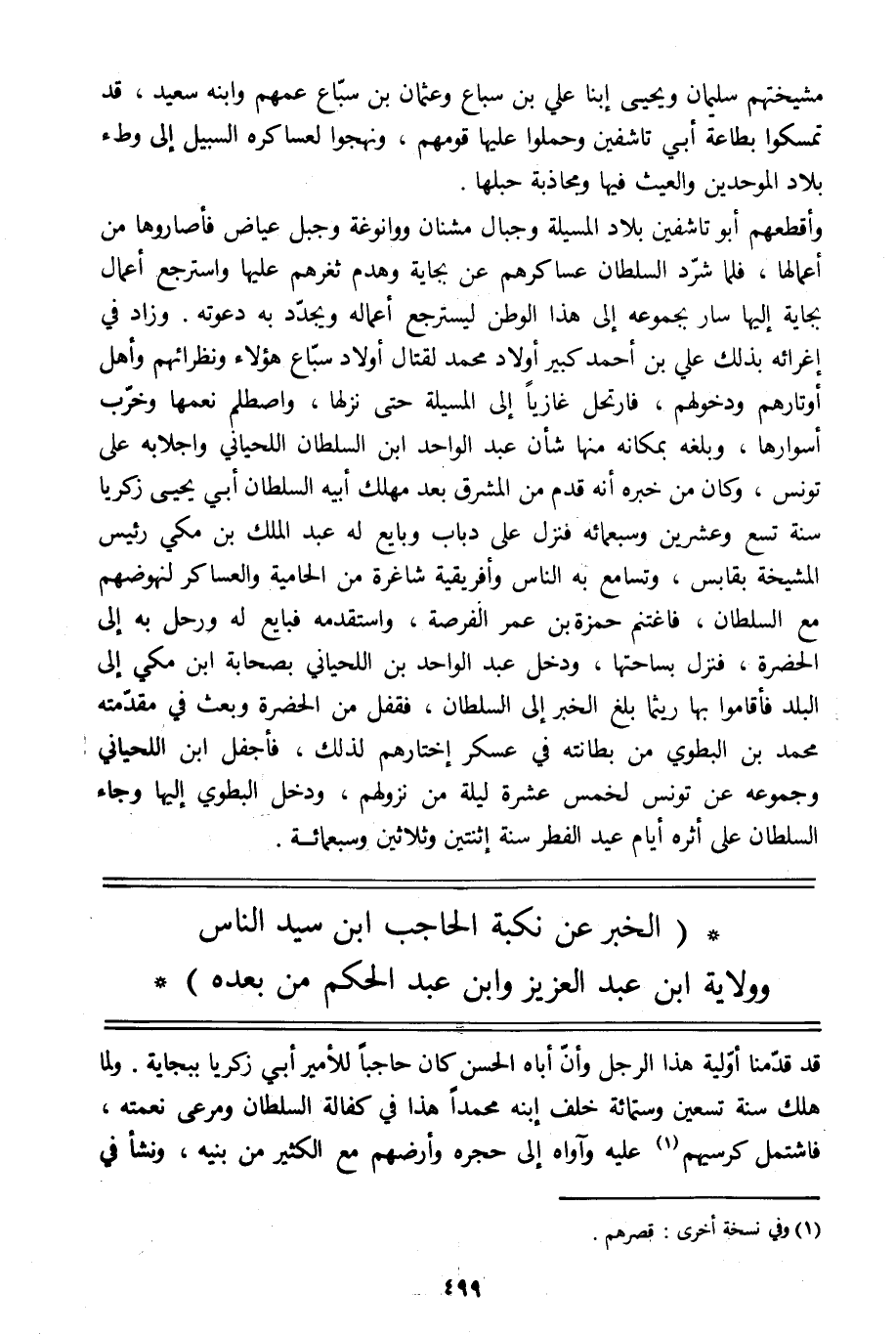 (الخبر عن نكبة الحاجب ابن سيد الناس وولاية ابن عبد العزيز وابن عبد الحكم من بعده)