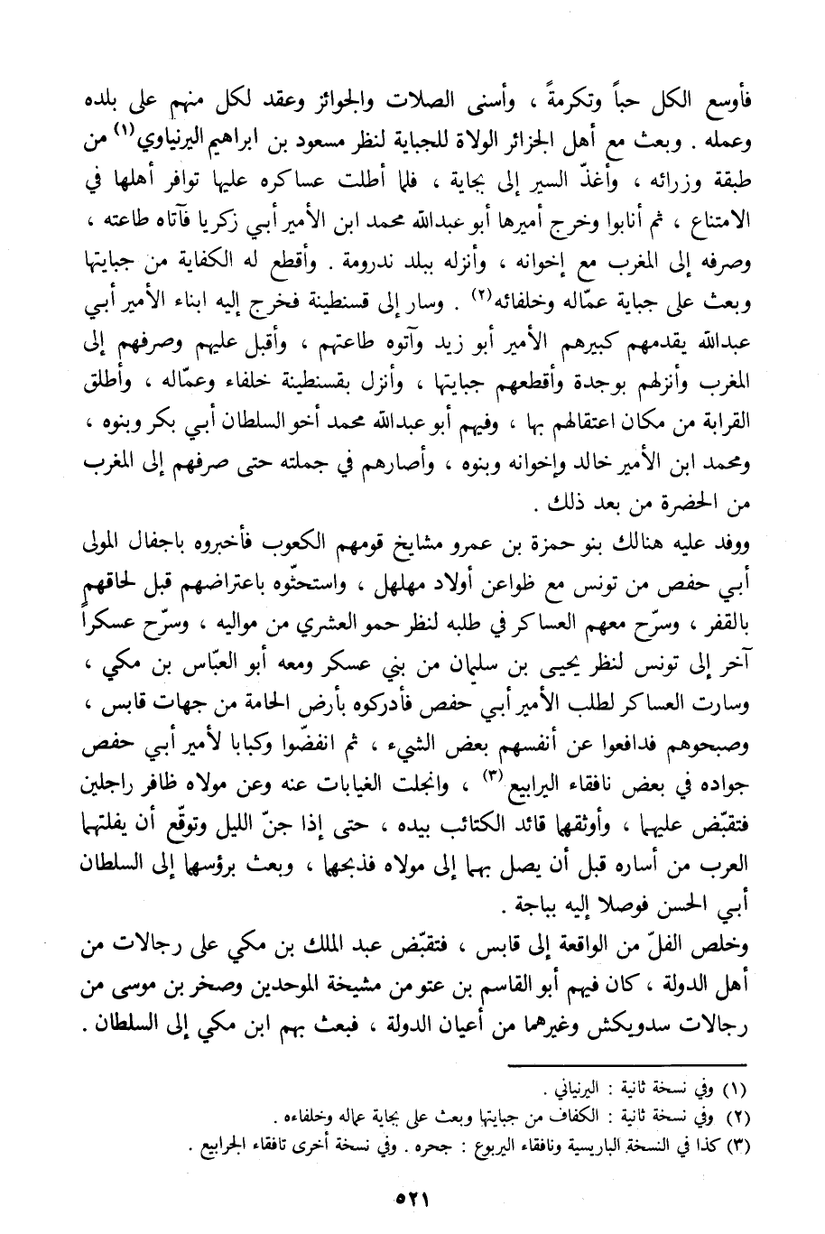 [2] وفي نسخة ثانية: الكفاف من جبايتها وبعث على بجاية عماله وخلفاءه.