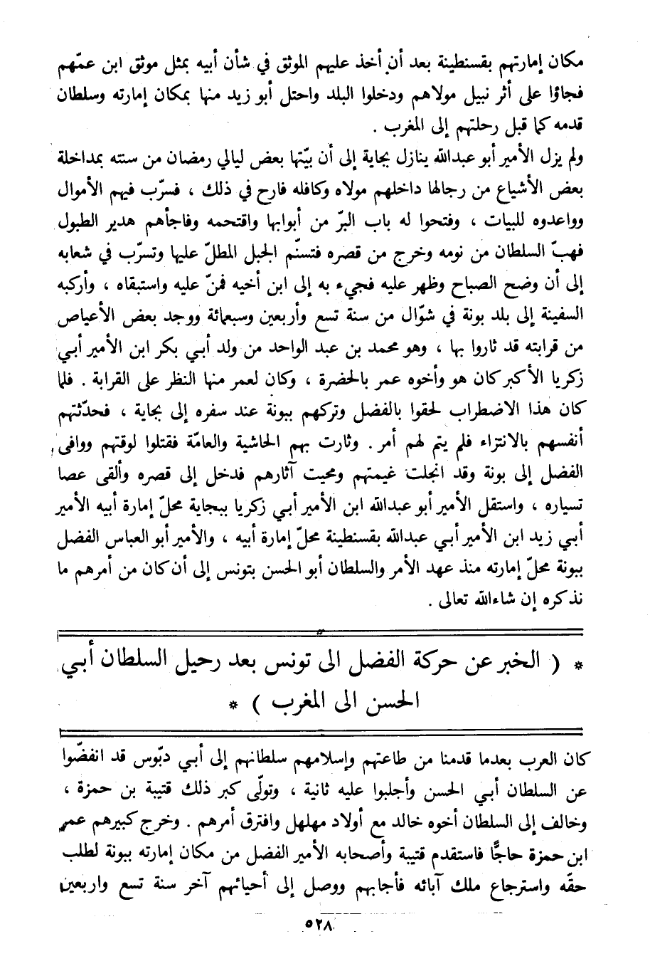 (الخبر عن حركة الفضل الى تونس بعد رحيل السلطان أبي الحسن الى المغرب)