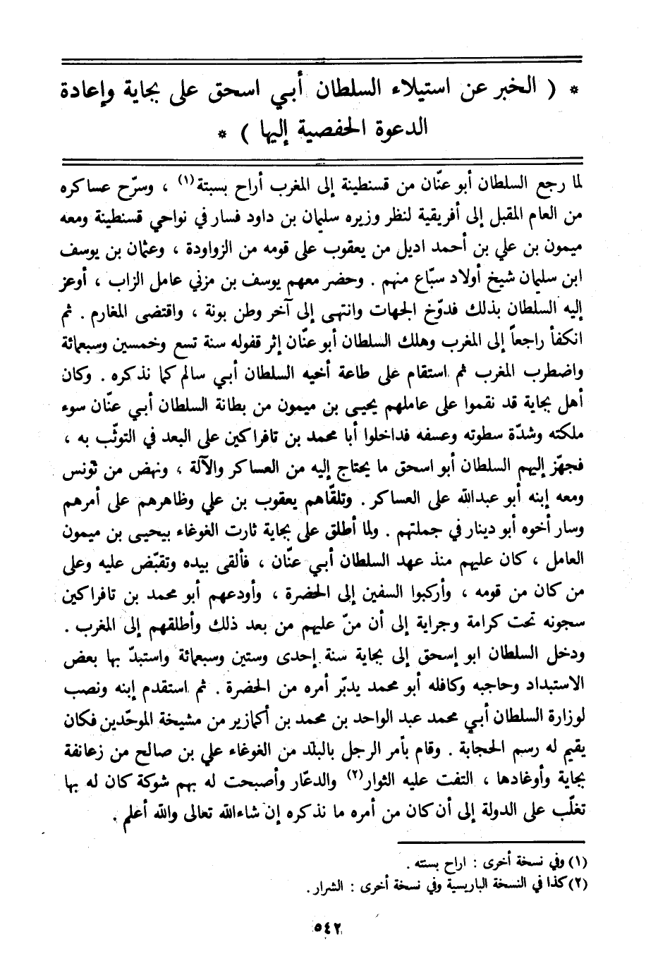 (الخبر عن استيلاء السلطان أبي إسحاق على بجاية وإعادة الدعوة الحفصية إليها)