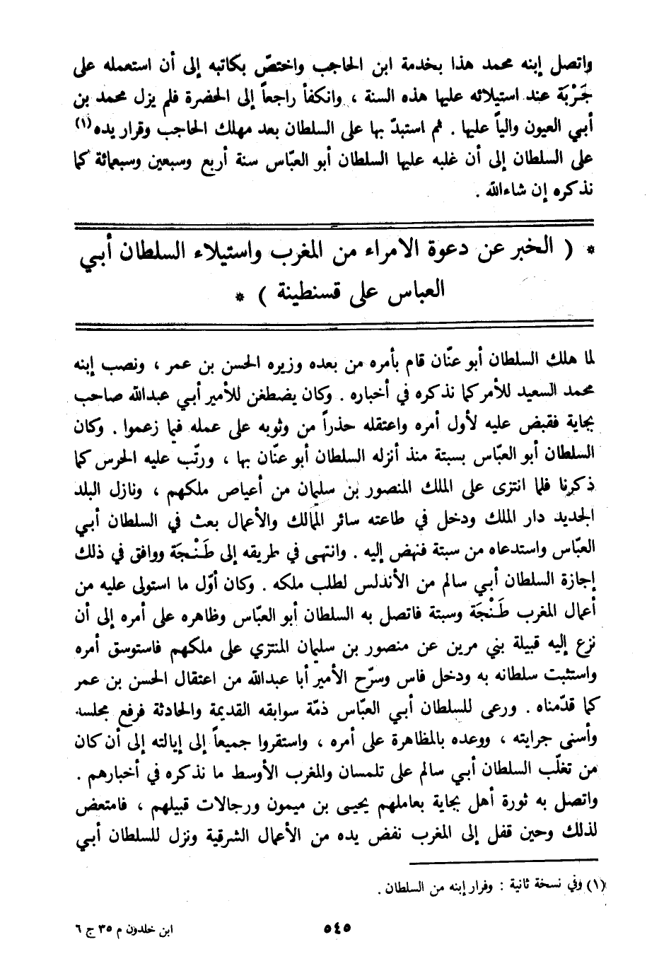 [1] وفي نسخة ثانية: وفرار ابنه من السلطان.