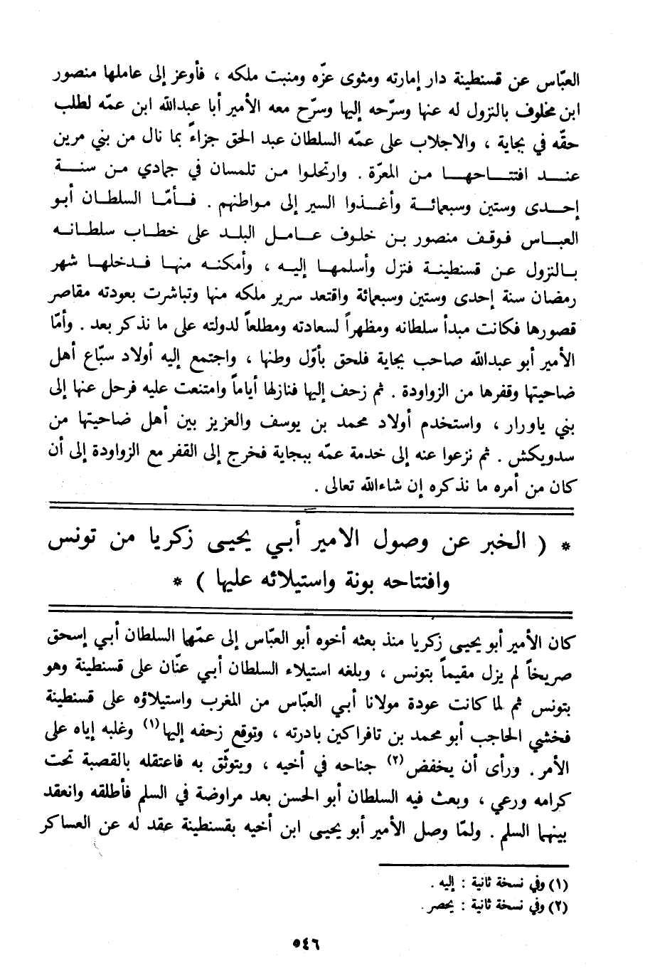 (الخبر عن وصول الأمير أبي يحيى زكريا من تونس وافتتاحه بونة واستيلائه عليها)