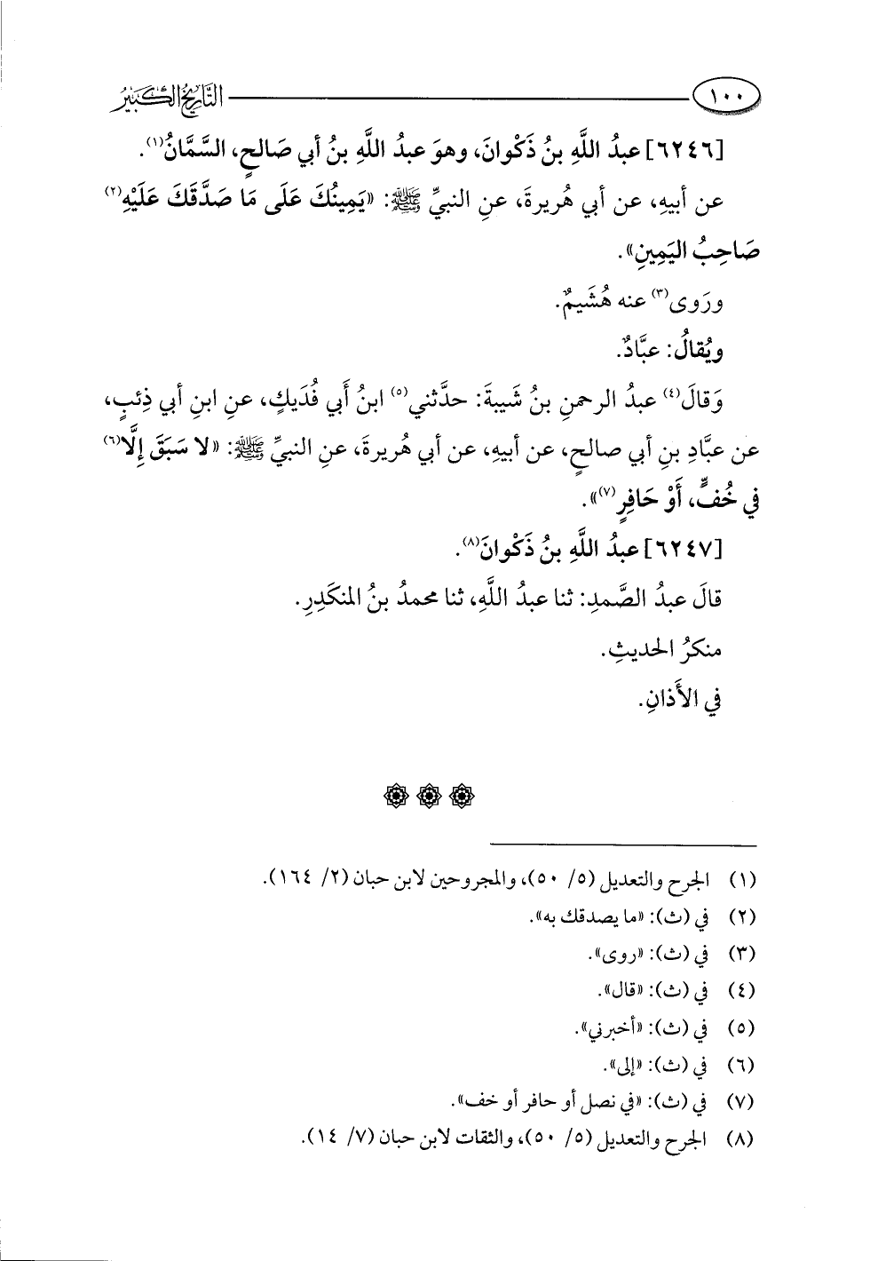 [٦٢٤٦] عبدُ اللَّهِ بنُ ذَكْوانَ، وهوَ عبدُ اللَّهِ بنُ أبي صَالحٍ، السَّمَّانُ (¬١).
