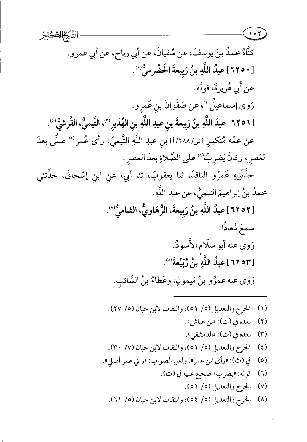 كتاب التاريخ الكبير للبخاري - ت الدباسي والنحال (اسم الجزء: 6)