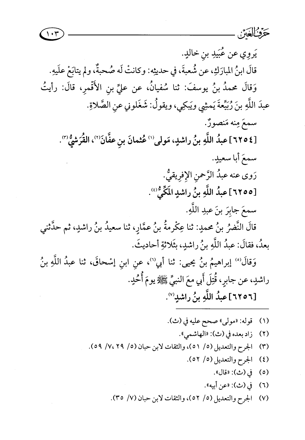 (¬٣) الجرح والتعديل (٥/ ٥١)، والثقات لابن حبان (٥/ ٢٩، ٧/ ٥٩).