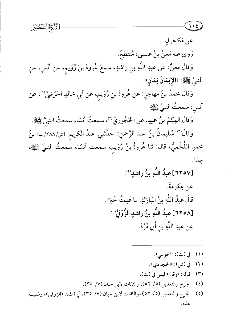 كتاب التاريخ الكبير للبخاري - ت الدباسي والنحال (اسم الجزء: 6)