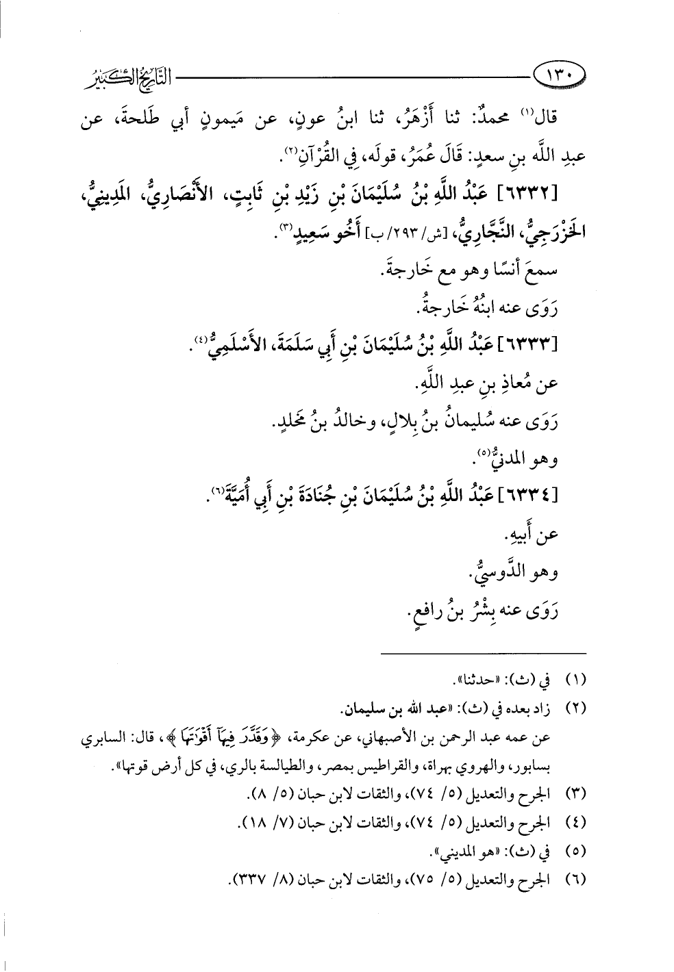 [٦٣٣٢] عَبْدُ اللَّهِ بْنُ سُلَيْمَانَ بْنِ زَيْدِ بْنِ ثَابِتٍ، الأَنْصَارِيُّ، المَدِينِيُّ، الخَزْرَجِيُّ، النَّجَّارِيُّ، أَخُو سَعِيدٍ (¬٣).