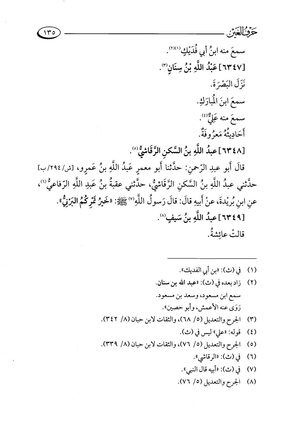 (¬٥) الجرح والتعديل (٥/ ٧٦)، والثقات لابن حبان (٨/ ٣٣٩).