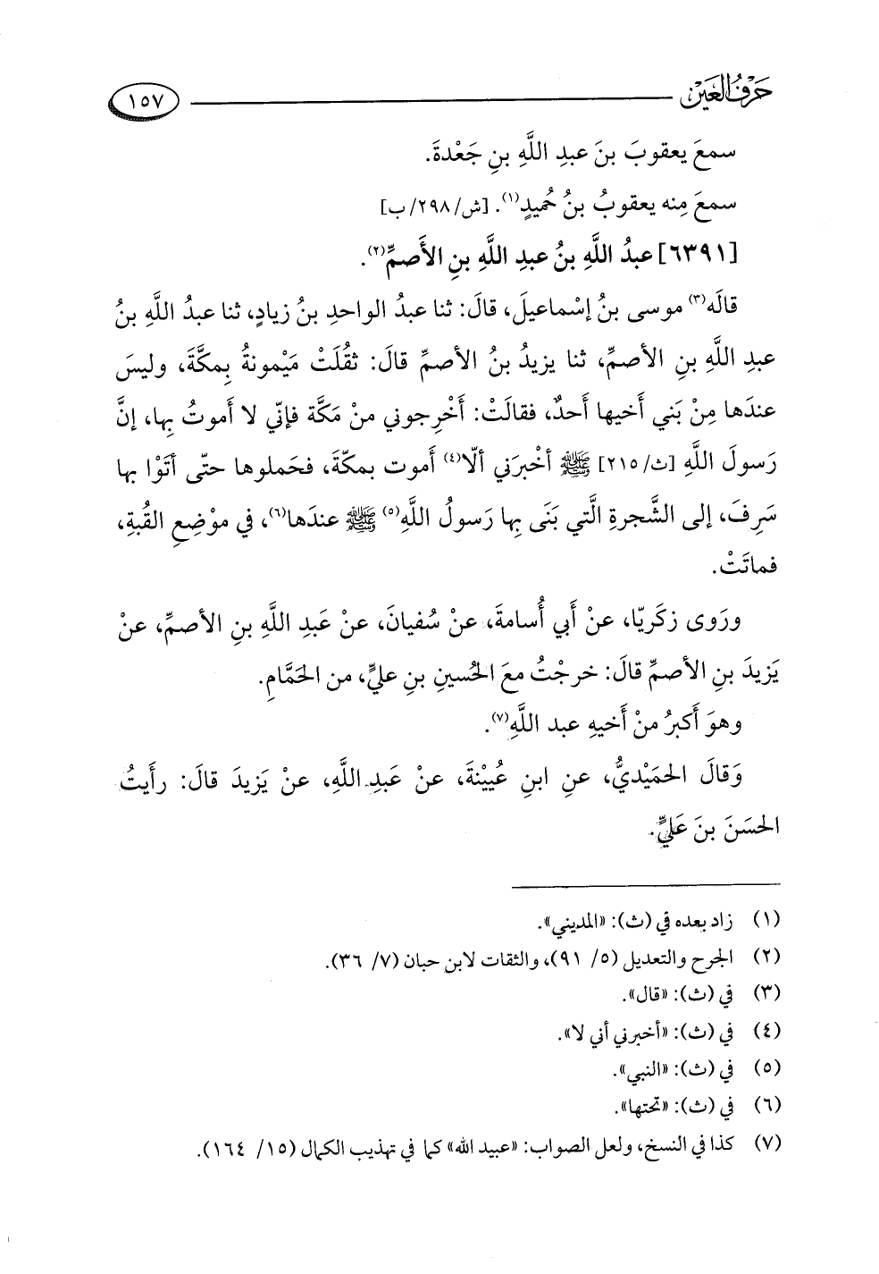 (¬٧) كذا في النسخ، ولعل الصواب: "عبيد اللَّه" كما في تهذيب الكمال (١٥/ ١٦٤).