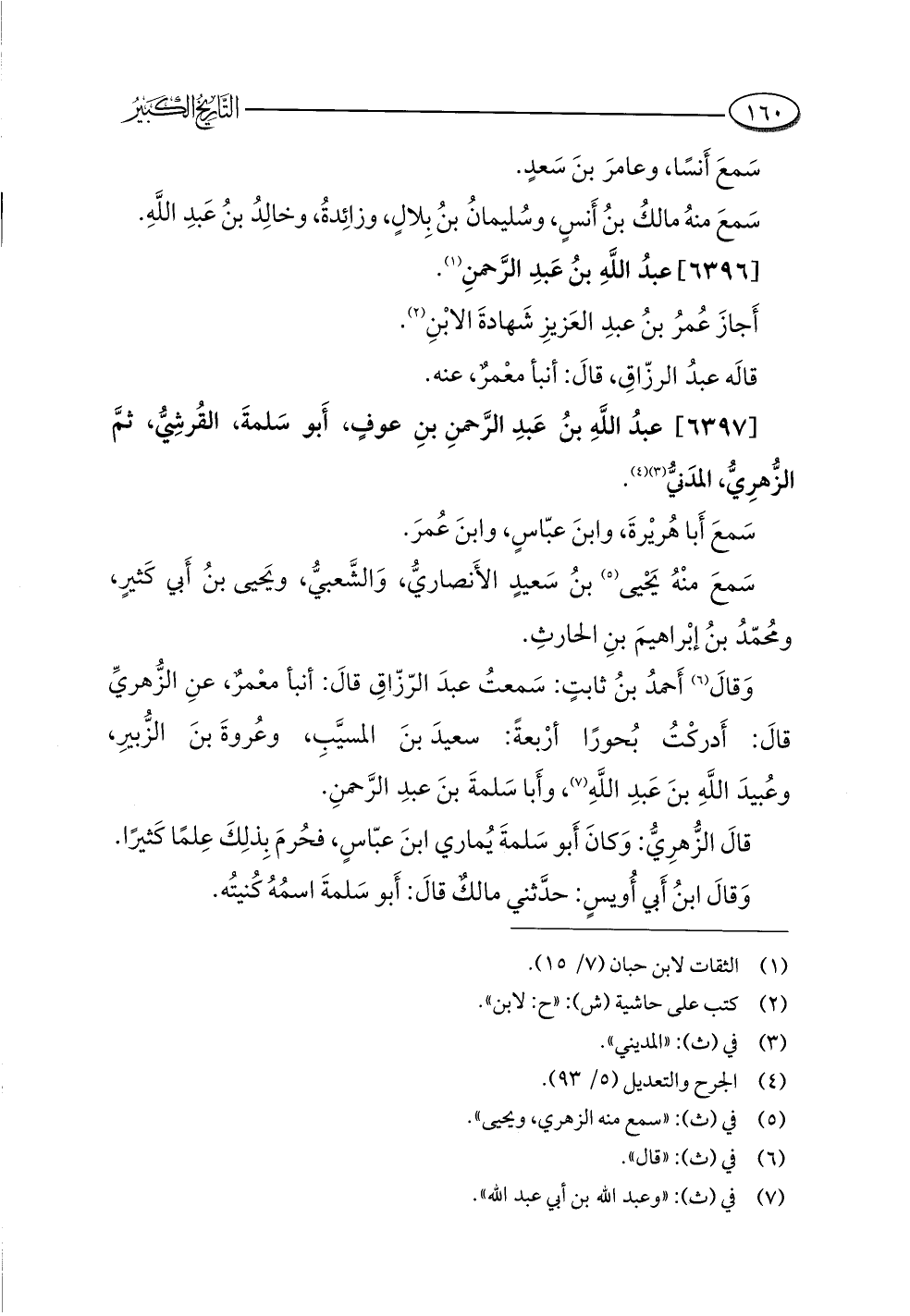 [٦٣٩٧] عبدُ اللَّهِ بنُ عَبدِ الرَّحمنِ بنِ عوفٍ، أَبُو سَلمةَ، القُرشِيُّ، ثمَّ الزُّهرِيُّ، المدَنيُّ (¬٣) (¬٤).
