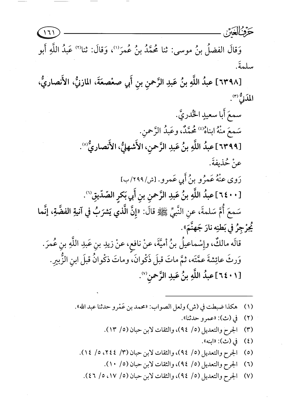 (¬٦) الجرح والتعديل (٥/ ٩٤)، والثقات لابن حبان (٥/ ١٠).