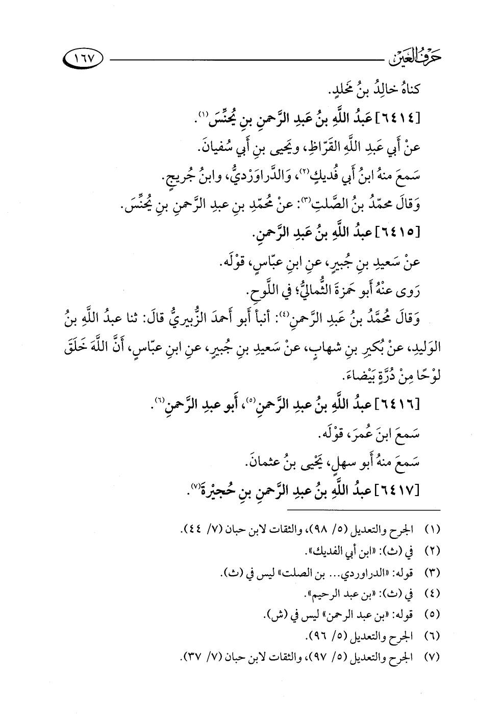 (¬٧) الجرح والتعديل (٥/ ٩٧)، والثقات لابن حبان (٧/ ٣٧).