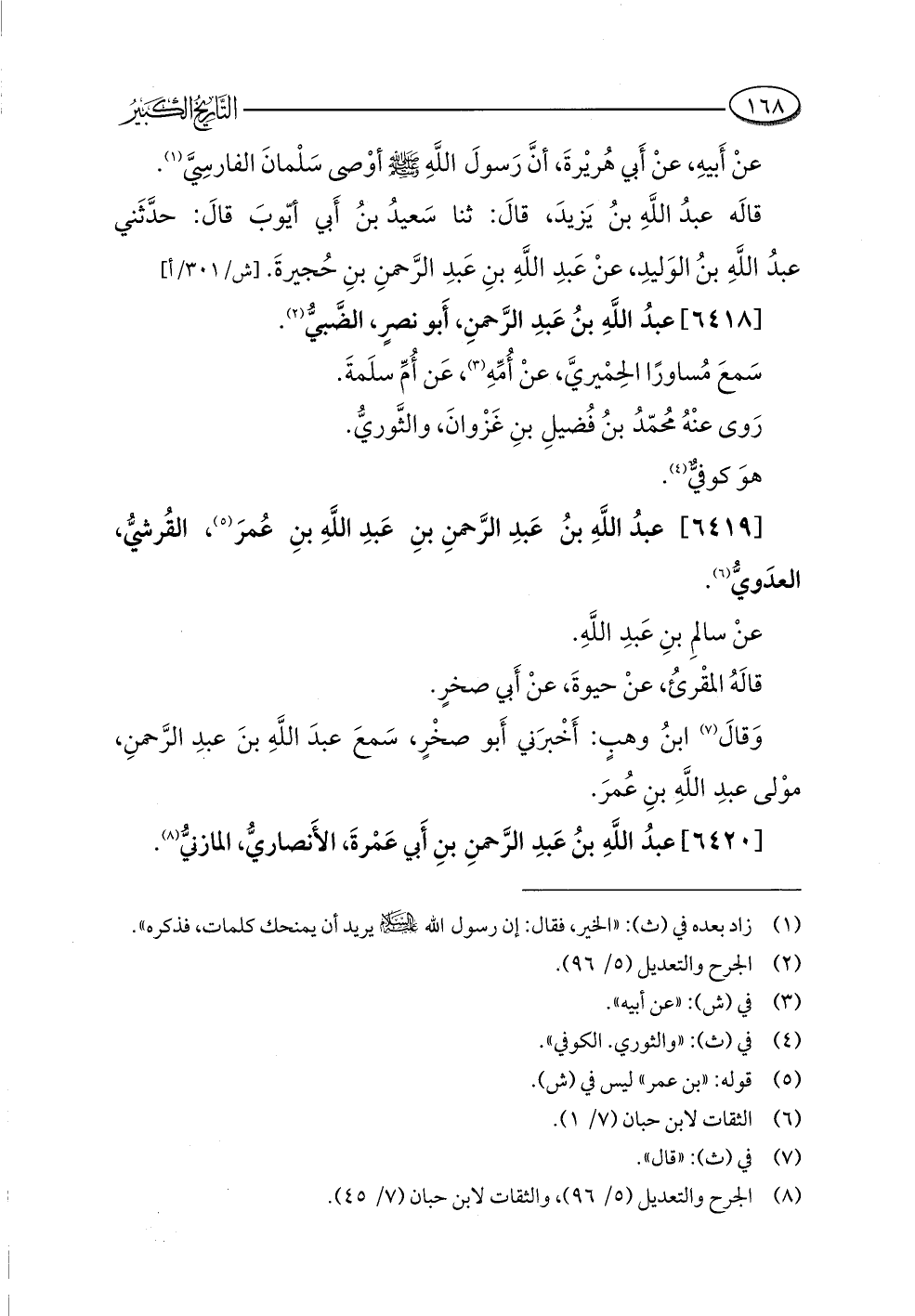 (¬٨) الجرح والتعديل (٥/ ٩٦) , والثقات لابن حبان (٧/ ٤٥).