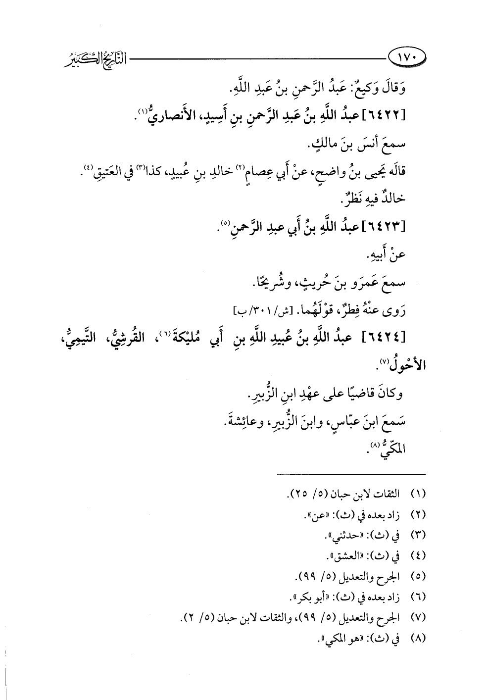 (¬٧) الجرح والتعديل (٥/ ٩٩)، والثقات لابن حبان (٥/ ٢).