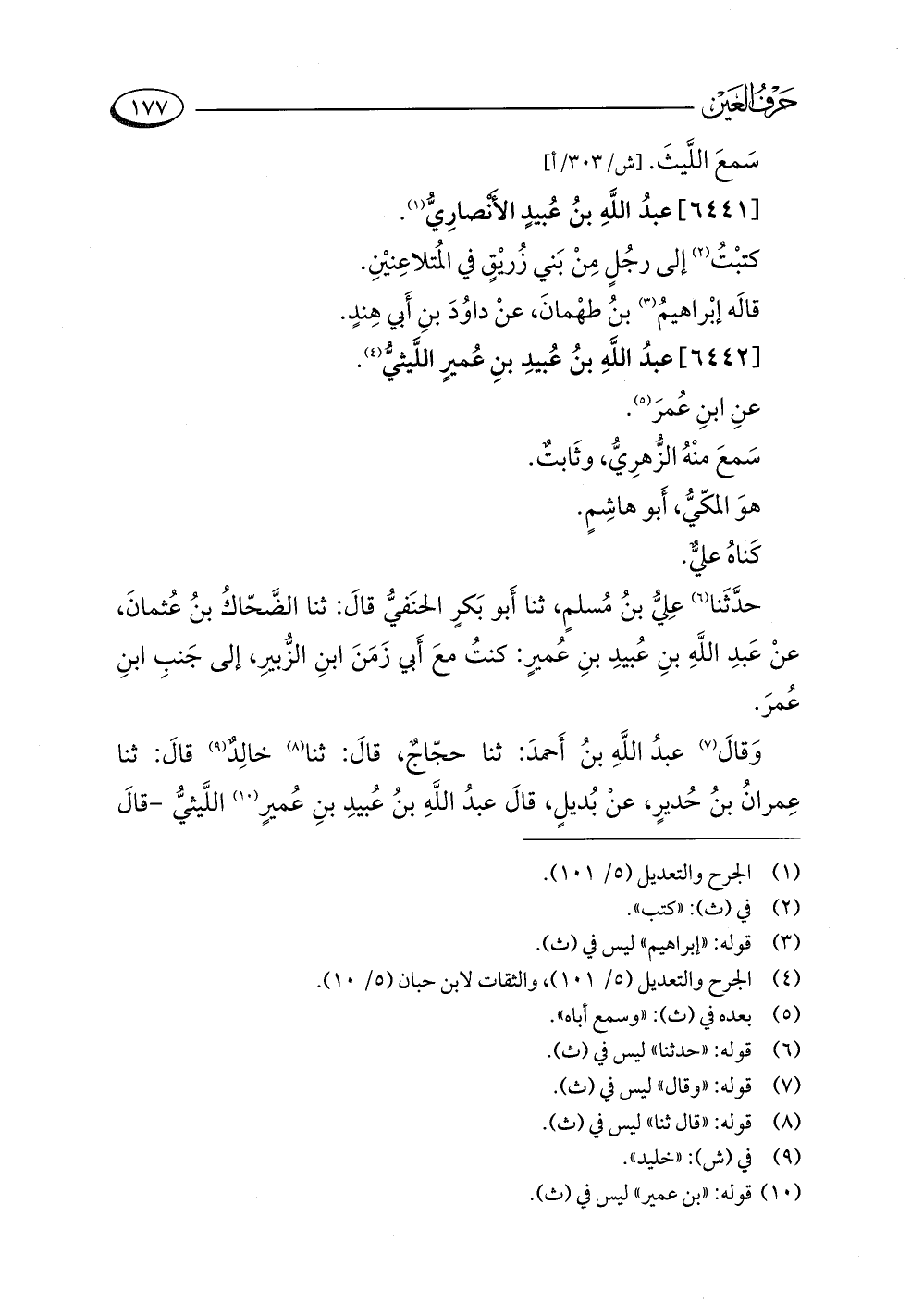 وَقالَ (¬٧) عبدُ اللَّهِ بنُ أَحمدَ: ثنا حجّاجٌ، قالَ: ثنا (¬٨) خالِدٌ (¬٩) قالَ: ثنا عِمرانُ بنُ حُديرٍ، عنْ بُديلٍ، قالَ عبدُ اللَّهِ بنُ عُبيدِ بنِ عُميرٍ (¬١٠) اللَّيثيُّ -قالَ
