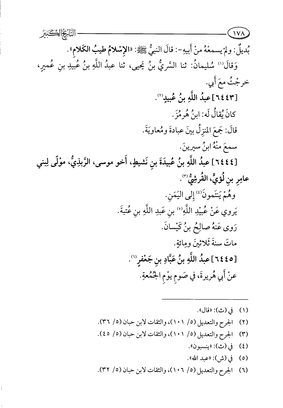 كتاب التاريخ الكبير للبخاري - ت الدباسي والنحال (اسم الجزء: 6)