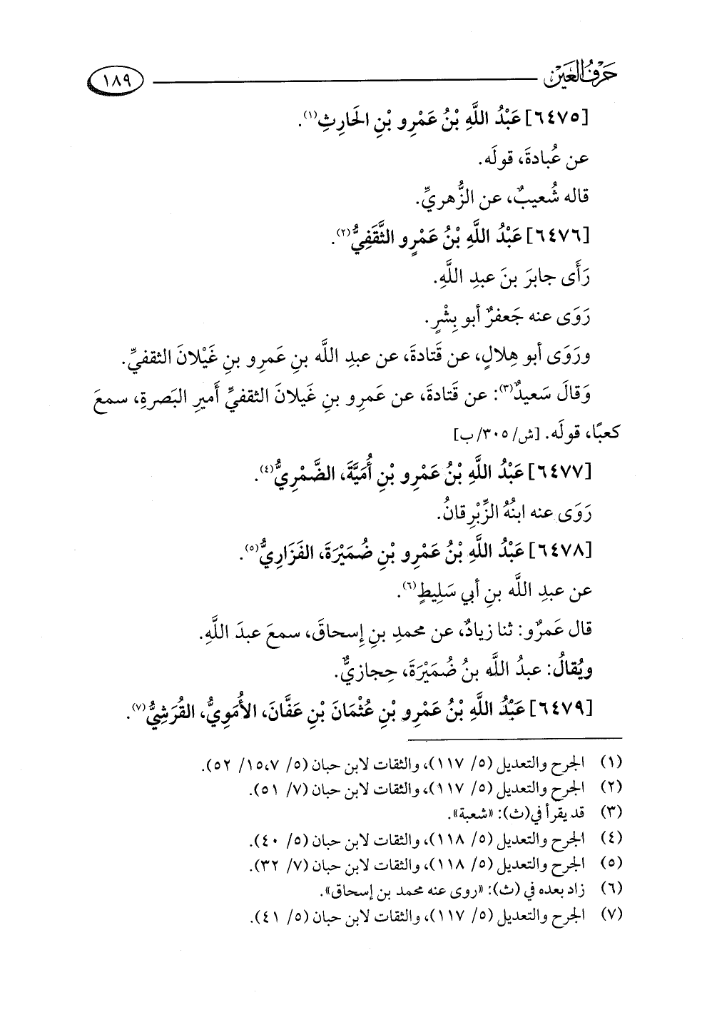 (¬٥) الجرح والتعديل (٥/ ١١٨)، والثقات لابن حبان (٧/ ٣٢).