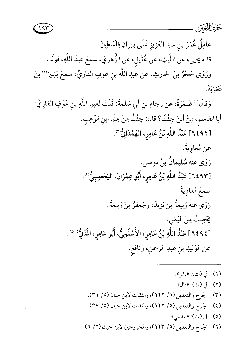 (¬٦) الجرح والتعديل (٥/ ١٢٣)، والمجروحين لابن حبان (٢/ ٦).